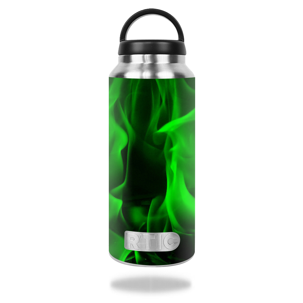 MightySkins RTBOT36-Green Flames Skin for RTIC 36 oz Bottle 2016 Wrap Cover Sticker - Green Flames
