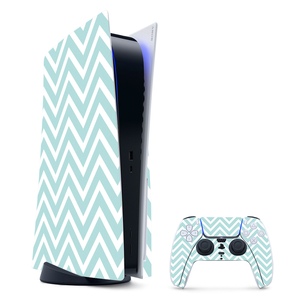 MightySkins SOPS5CMB-Aqua Chevron Skin for PS5 & Playstation 5 Bundle - Aqua Chevron