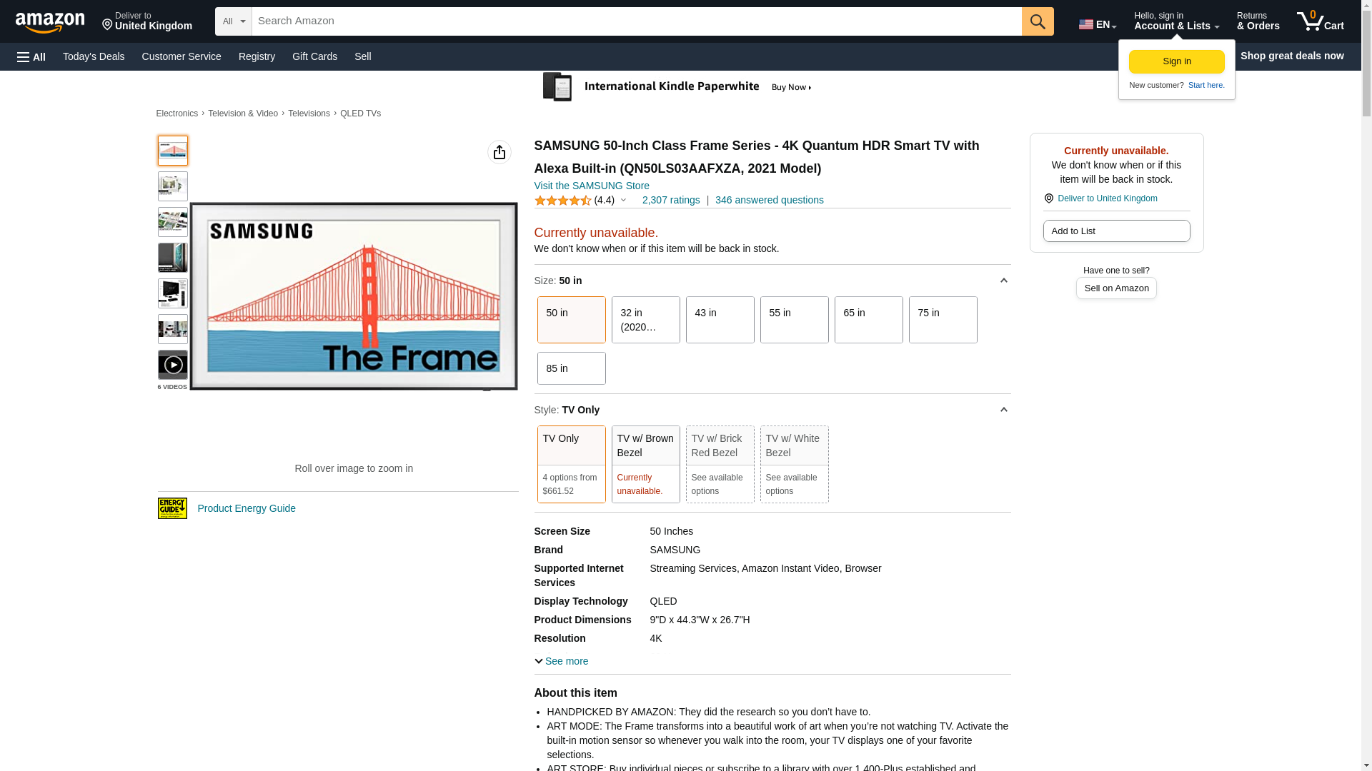 SAMSUNG 50-Inch Class Frame Series - 4K Quantum HDR Smart TV with Alexa Built-in (QN50LS03AAFXZA, 2021 Model)