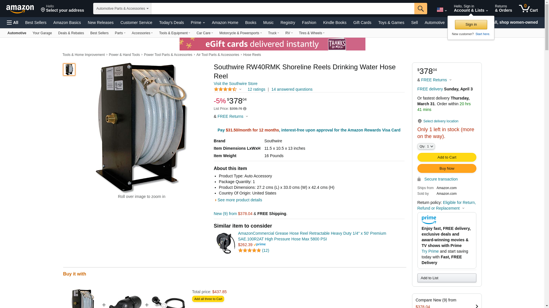 Southwire RW40RMK Shoreline Reels Drinking Water Hose Reel