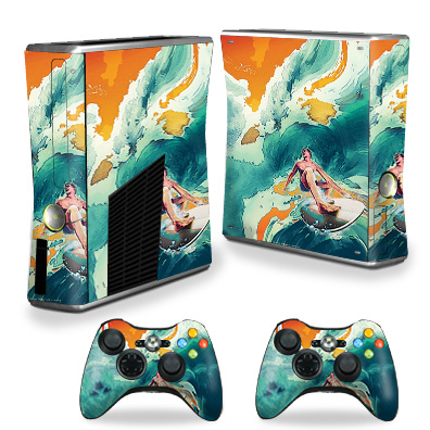 MightySkins XBOX360S-Acid Surf Skin Decal Wrap for Xbox 360 S Slim Plus 2 Controllers - Acid Surf