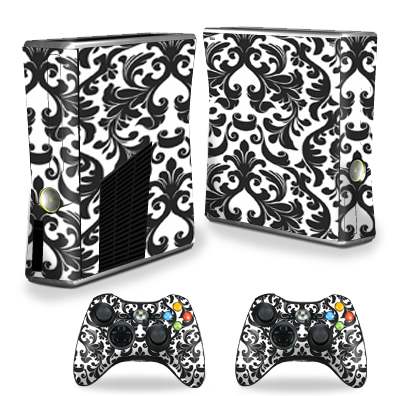 MightySkins XBOX360S-Black Damask Skin Decal Wrap Cover for Xbox 360 S Slim Plus 2 Controllers - Black Damask