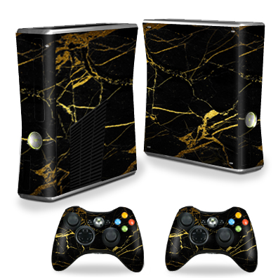 MightySkins XBOX360S-Black Gold Marble Skin Decal Wrap for Xbox 360 S Slim Plus 2 Controllers - Black Gold Marble