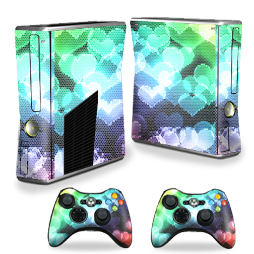 MightySkins XBOX360S-Colorful Hearts Skin Decal Wrap Cover for Xbox 360 S Slim Plus 2 Controllers - Colorful Hearts