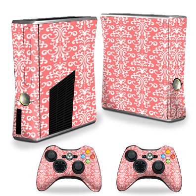 MightySkins XBOX360S-Coral Damask Skin Decal Wrap Cover for Xbox 360 S Slim Plus 2 Controllers - Coral Damask