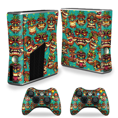 MightySkins XBOX360S-Crazy Tikis Skin Decal Wrap for Xbox 360 S Slim Plus 2 Controllers - Crazy Tikis