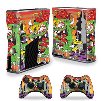 MightySkins XBOX360S-Dragon Rocker Skin Decal Wrap for Xbox 360 S Slim Plus 2 Controllers - Dragon Rocker