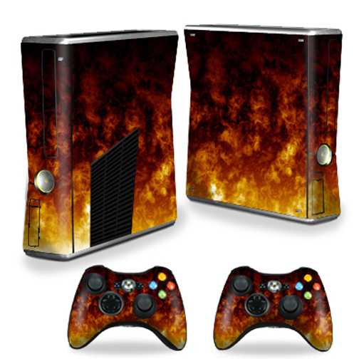 MightySkins XBOX360S-Firestorm Skin Decal Wrap Cover for Xbox 360 S Slim Plus 2 Controllers - Firestorm