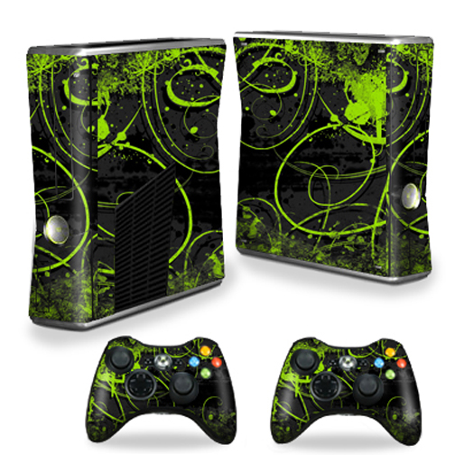 MightySkins XBOX360S-Green Distortion Skin Decal Wrap Cover for Xbox 360 S Slim Plus 2 Controllers - Green Distortion