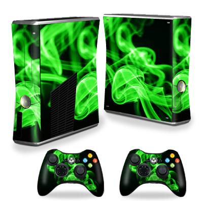 MightySkins XBOX360S-Green Flames Skin Decal Wrap Cover for Xbox 360 S Slim Plus 2 Controllers - Green Flames
