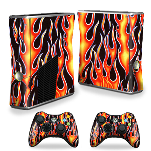 MightySkins XBOX360S-Hot Flames Skin Decal Wrap Cover for Xbox 360 S Slim Plus 2 Controllers - Hot Flames