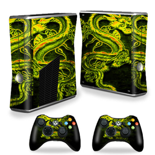 MightySkins XBOX360S-Neon Dragon Skin Decal Wrap Cover for Xbox 360 S Slim Plus 2 Controllers - Neon Dragon