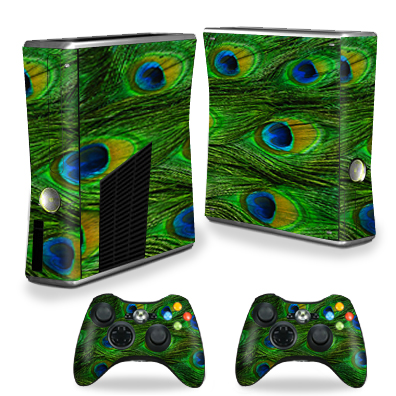 MightySkins XBOX360S-Peacock Feathers Skin Decal Wrap for Xbox 360 S Slim Plus 2 Controllers - Peacock Feathers