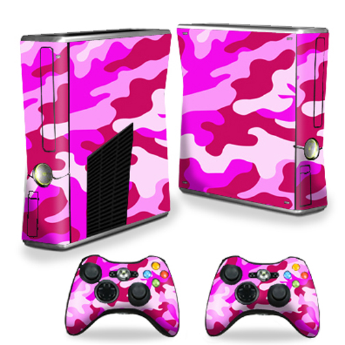 MightySkins XBOX360S-Pink Camo Skin Decal Wrap Cover for Xbox 360 S Slim Plus 2 Controllers - Pink Camo