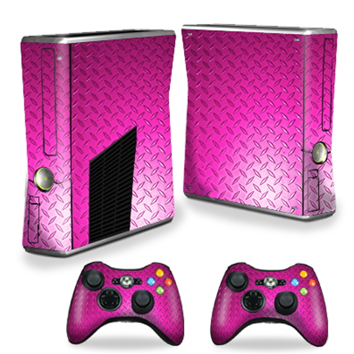 MightySkins XBOX360S-Pink Diamond Plate Skin Decal Wrap Cover for Xbox 360 S Slim Plus 2 Controllers - Pink Dia Plate