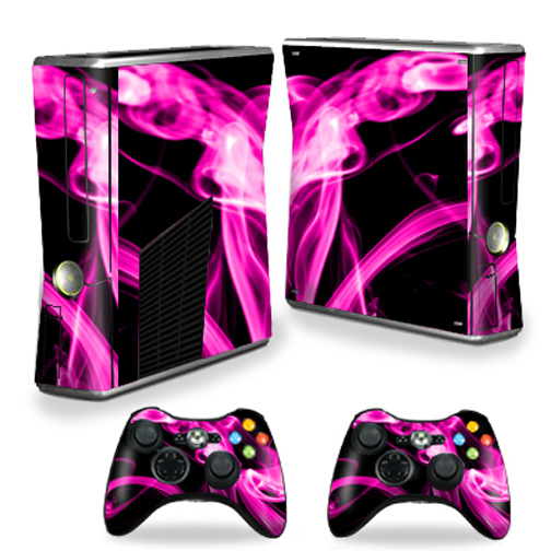 MightySkins XBOX360S-Pink Flames Skin Decal Wrap Cover for Xbox 360 S Slim Plus 2 Controllers - Pink Flames