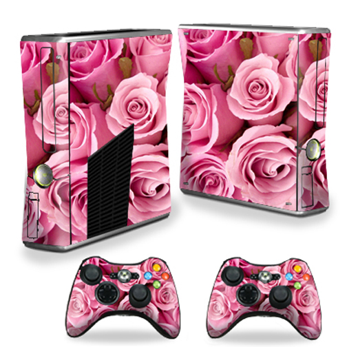 MightySkins XBOX360S-Pink Roses Skin Decal Wrap Cover for Xbox 360 S Slim Plus 2 Controllers - Pink Roses