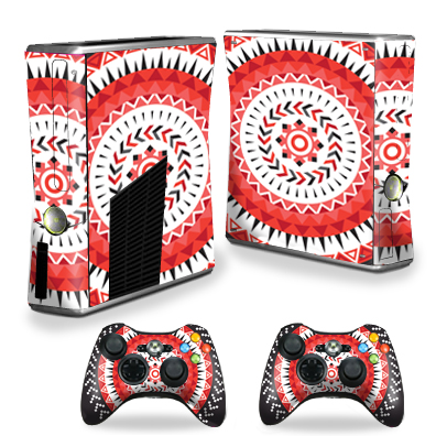 MightySkins XBOX360S-Red Aztec Skin Decal Wrap Cover for Xbox 360 S Slim Plus 2 Controllers - Red Aztec