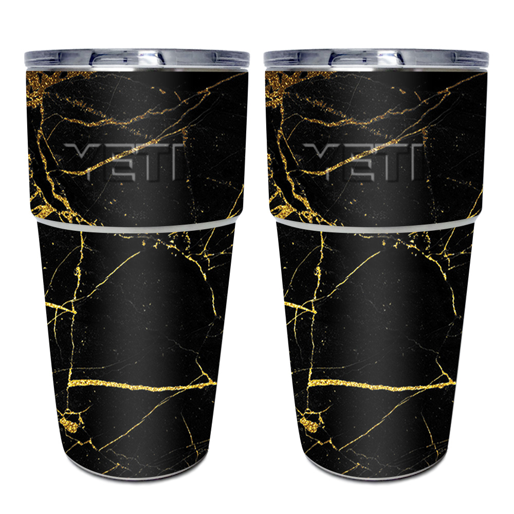 MightySkins YEPINT16-Black Gold Marble Skin for Yeti Rambler 16 oz Stackable Pints - Black Gold Marble - Pack of 2