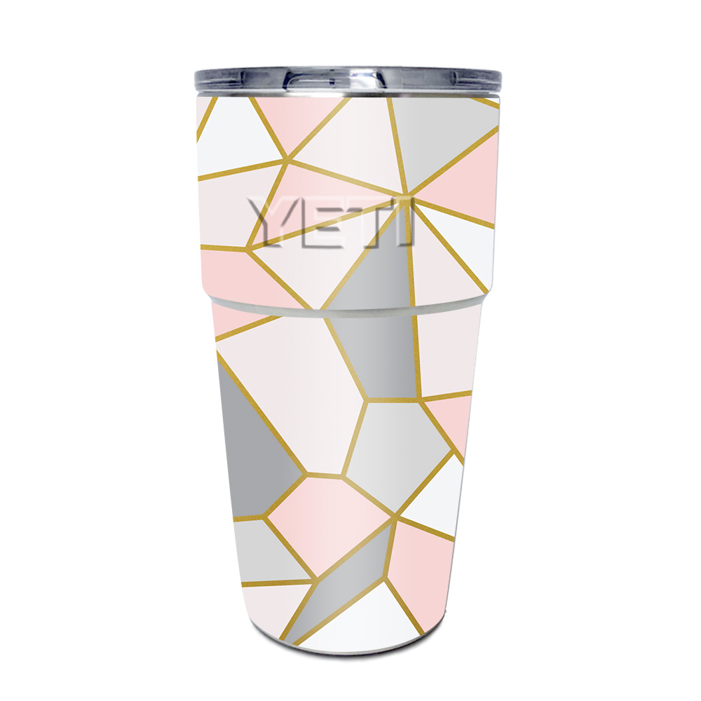 MightySkins YEPINT16SI-Rose Gold Polygon Skin for Yeti Rambler 16 oz Stackable Cup - Rose Gold Polygon
