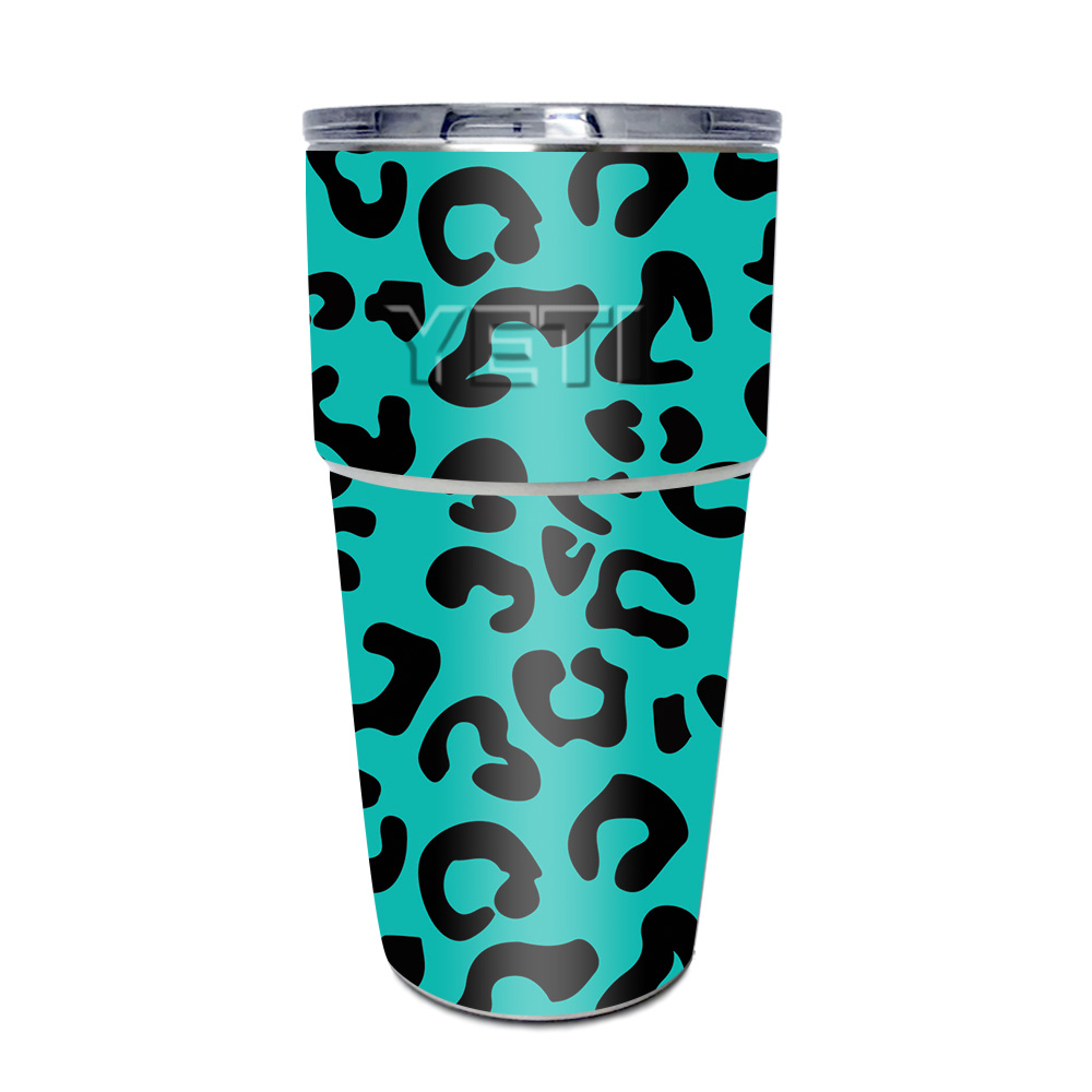 MightySkins YEPINT16SI-Teal Leopard Skin for Yeti Rambler 16 oz Stackable Cup - Teal Leopard