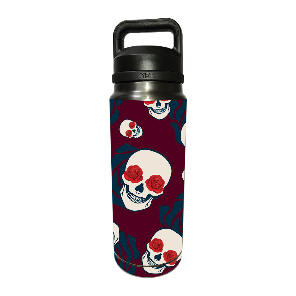MightySkins YERABOT26-Skulls N Roses Skin Compatible with YETI Rambler 26 oz Bottle - Skulls N Roses
