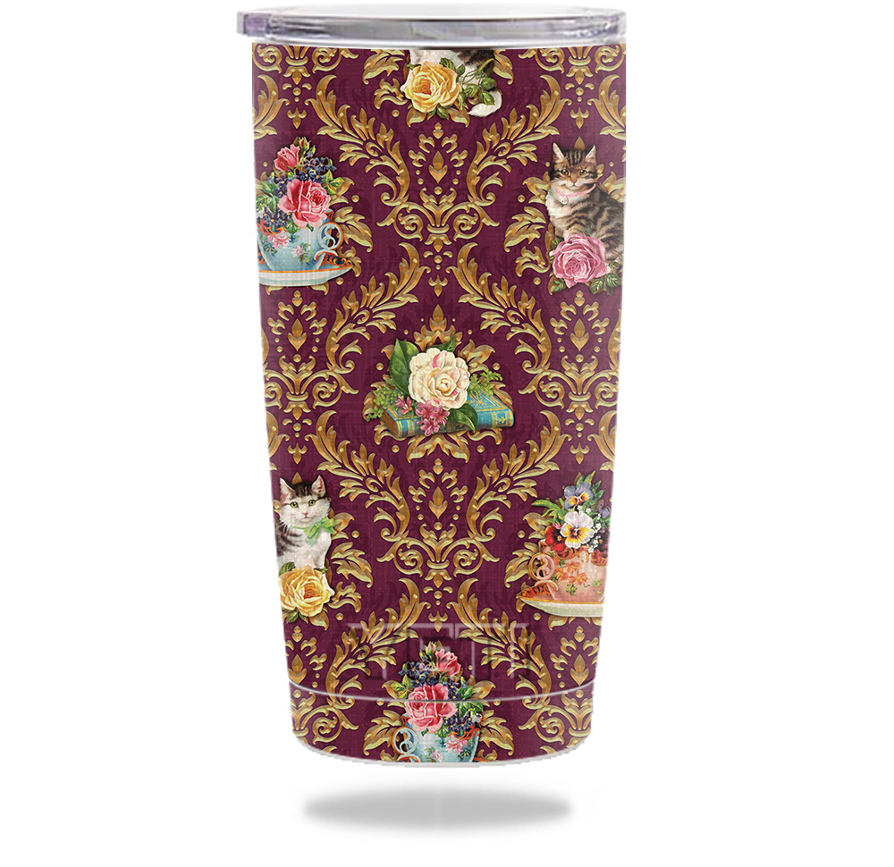 MightySkins YERAM20-Teatime Cat Damask Skin for Yeti 20 oz Tumbler - Teatime Cat Damask