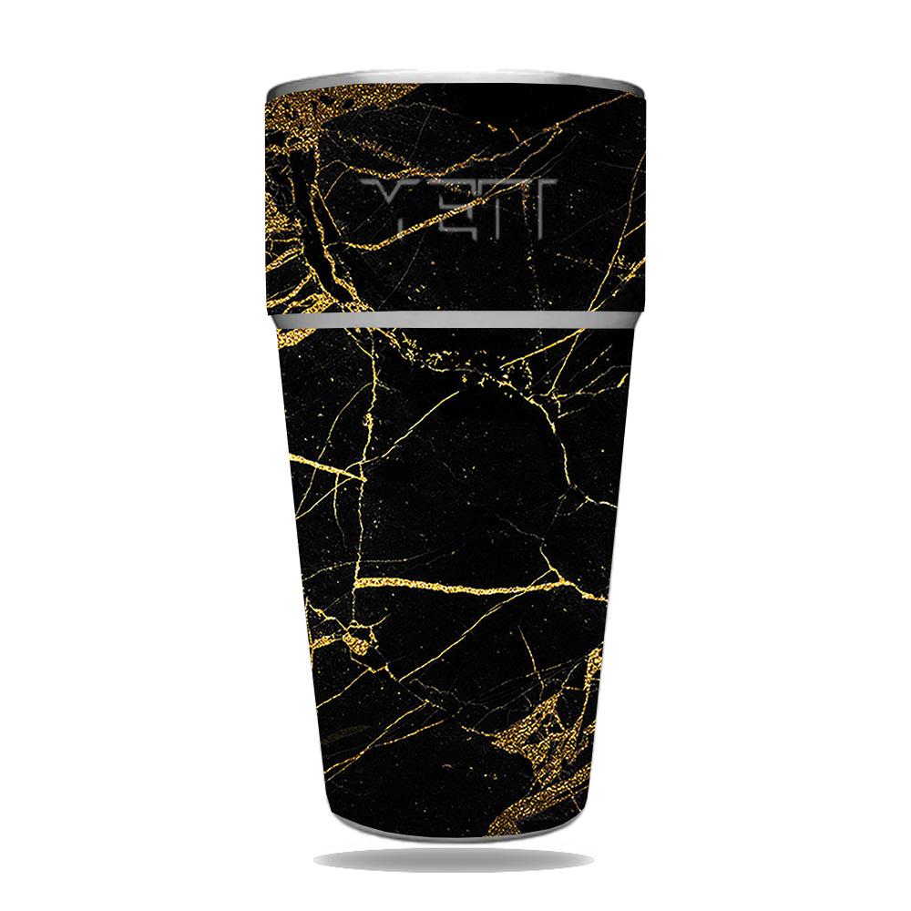 MightySkins YERAM26SI-Black Gold Marble Skin for Yeti Rambler 26 oz Stackable Cup - Black Gold Marble