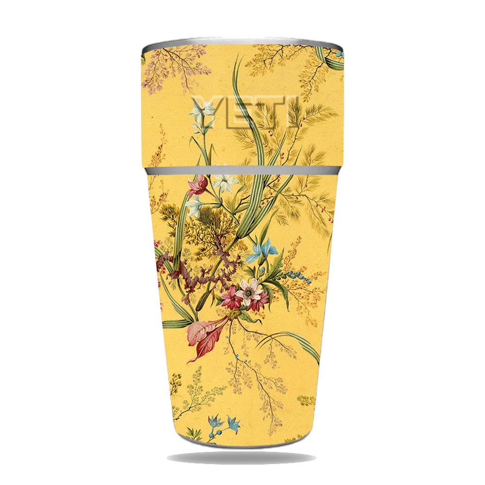 MightySkins YERAM26SI-Yellow Marble End Skin for Yeti Rambler 26 oz Stackable Cup - Yellow Marble End
