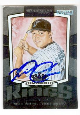 Miguel Cabrera autographed baseball card (Florida Marlins) 2005 Donruss No.10 Diamond Kings nubbed corner