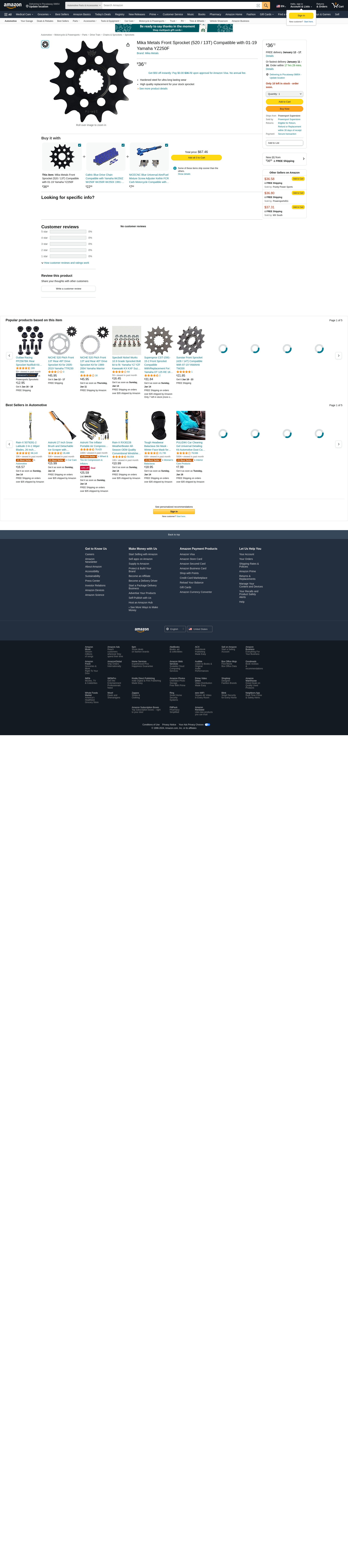 | Feature | Mika sprockets are made of the highest quality steel to withstand the rigors of off-road racing.Hardened steel for ultra-long lasting wear.High quality replacement for you stock sprocket.Self-cleaning grooves to improve sprocket life.Tooth design allows f |