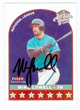 Mike Lowell autographed baseball card (Florida Marlins) 2002 Fleer Tradition No.U335 All Star