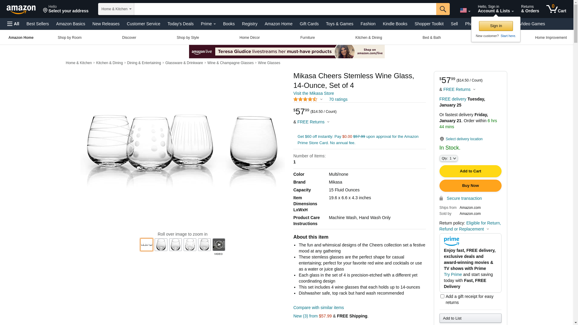 | Feature | Mikasa Cheers - stemless wine glasses |