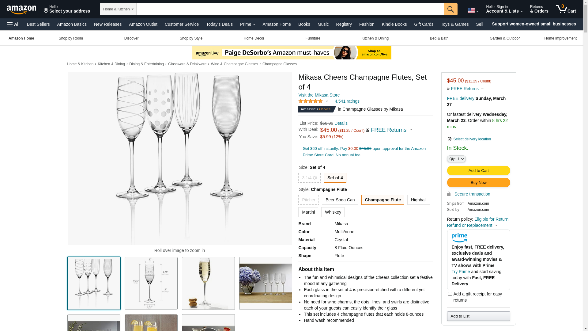 Mikasa Cheers Champagne Flutes, Set of 4: Maxedbuy.com